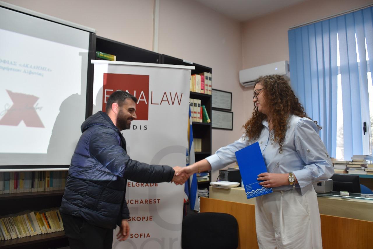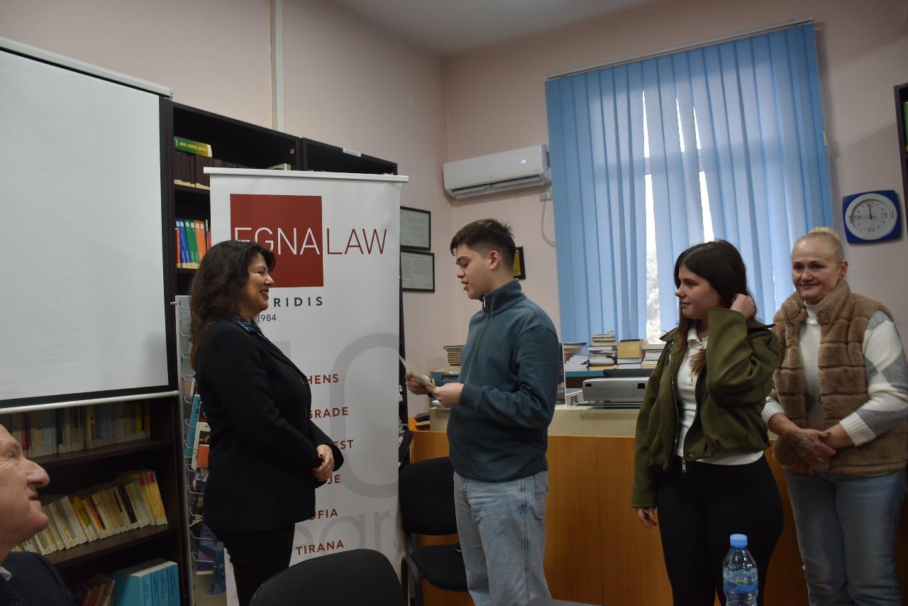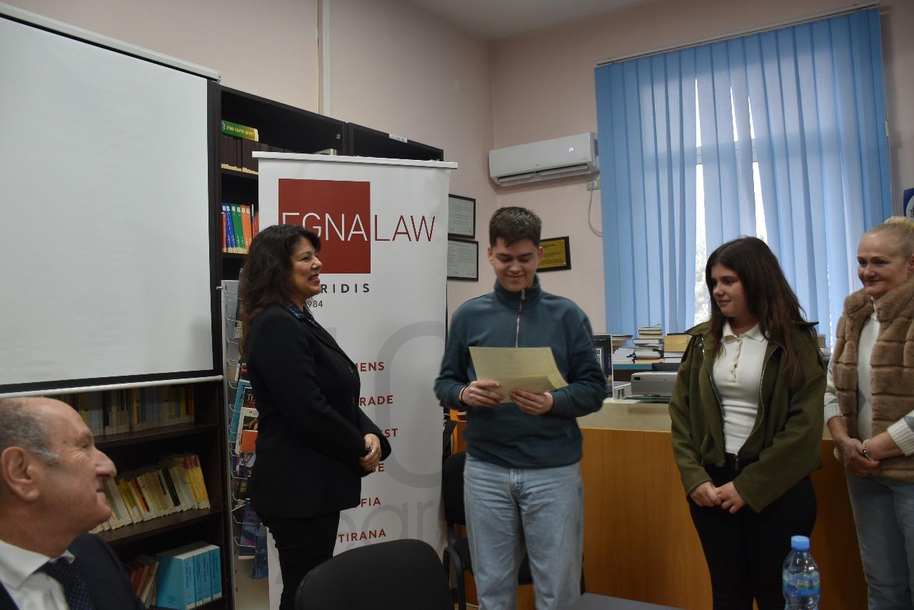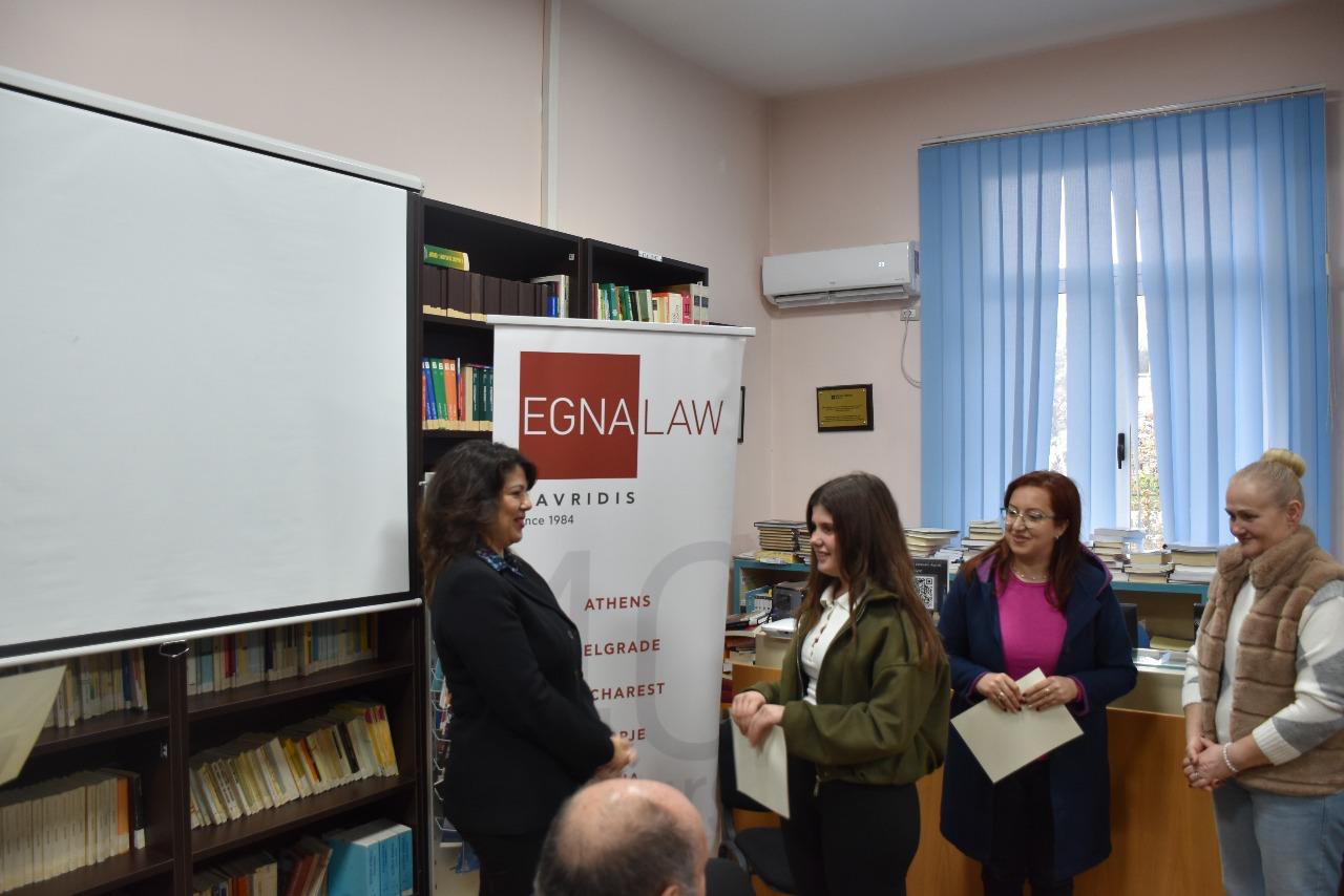 Vlen të theksohet se z. Efthymis Navridis, Themelues i EGNA Law Firm dhe anëtar i Shoqatës, ofroi këtë vit tre bursa, duke vijuar mbështetjen e tij të pandërprerë për Departamentin e Gjuhës Greke. Përmes kontributit të tij dhe bursës së institucionalizuar «Profesor Vassos Karageorgiou», ai mbështet në mënyrë domethënëse studentët dhe kontribuon realisht në forcimin e edukimit në gjuhën greke në Shqipëri.