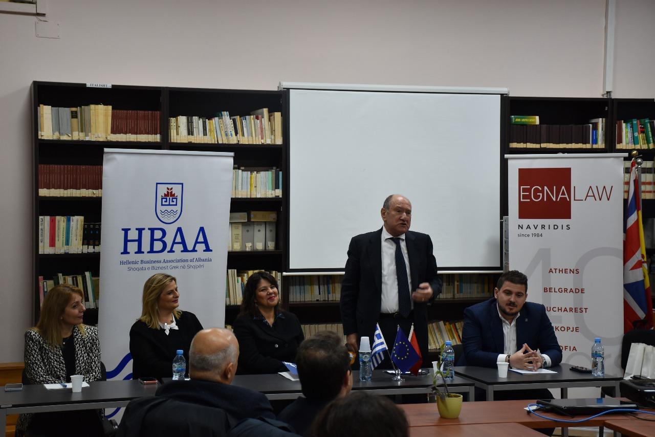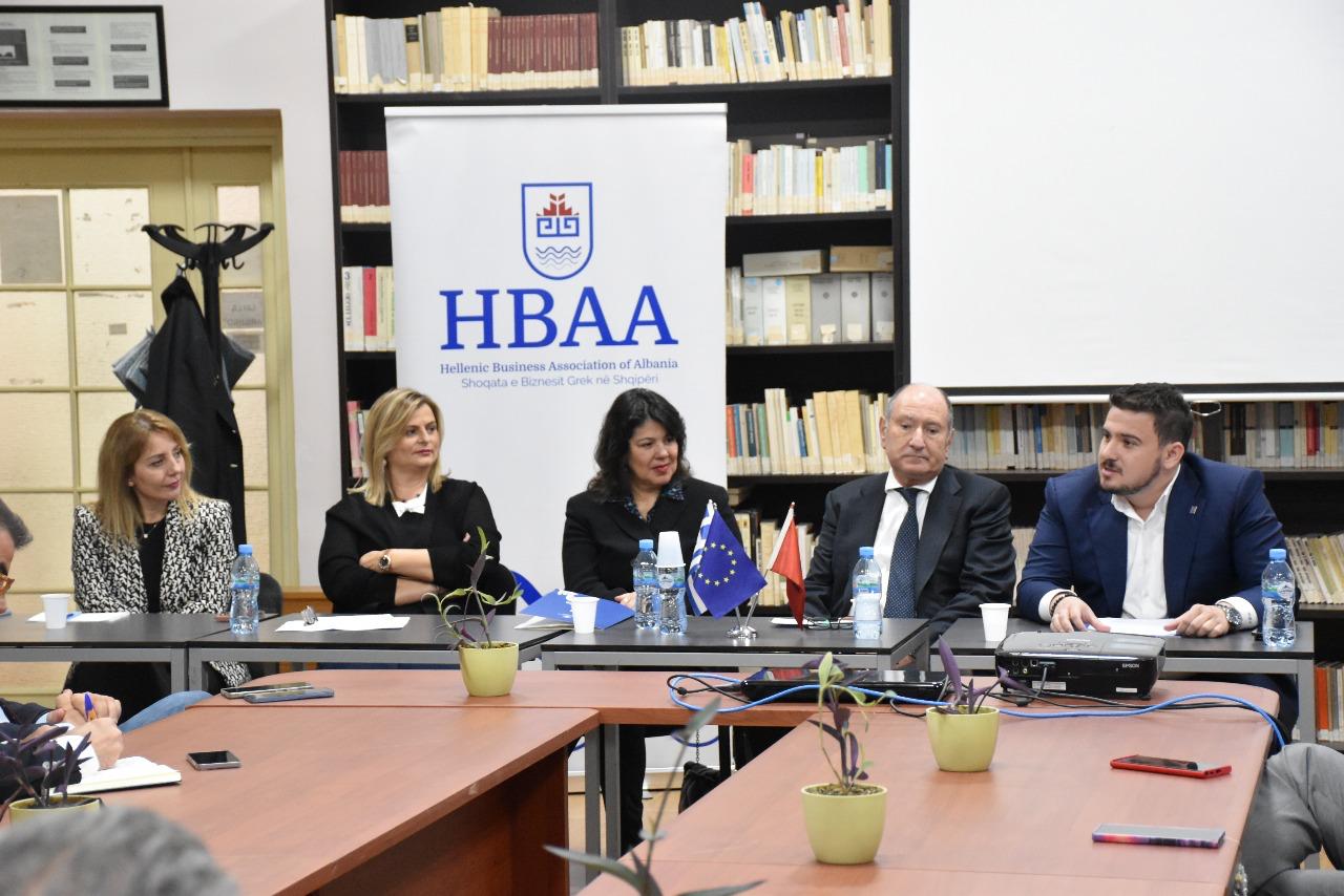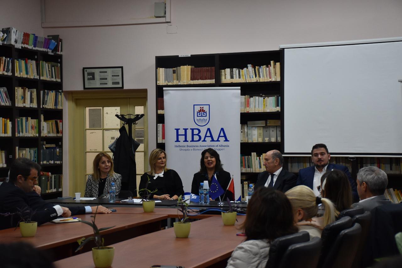 Shoqata e Biznesit Grek në Shqipëri këtë vit inauguroi nismën «AKADEMIA», një nismë të re që synon të shndërrohet në pikë referimi për promovimin e ekselencës dhe përparimit akademik. Përmes dhënies së bursave për studentët e Departamentit të Gjuhës Greke, “AKADEMIA” synon të mbështesë të rinjtë duke u ofruar mjetet e nevojshme për vazhdimin e studimeve të tyre.