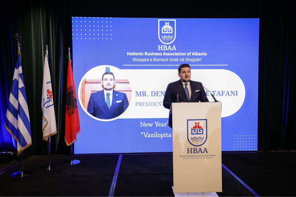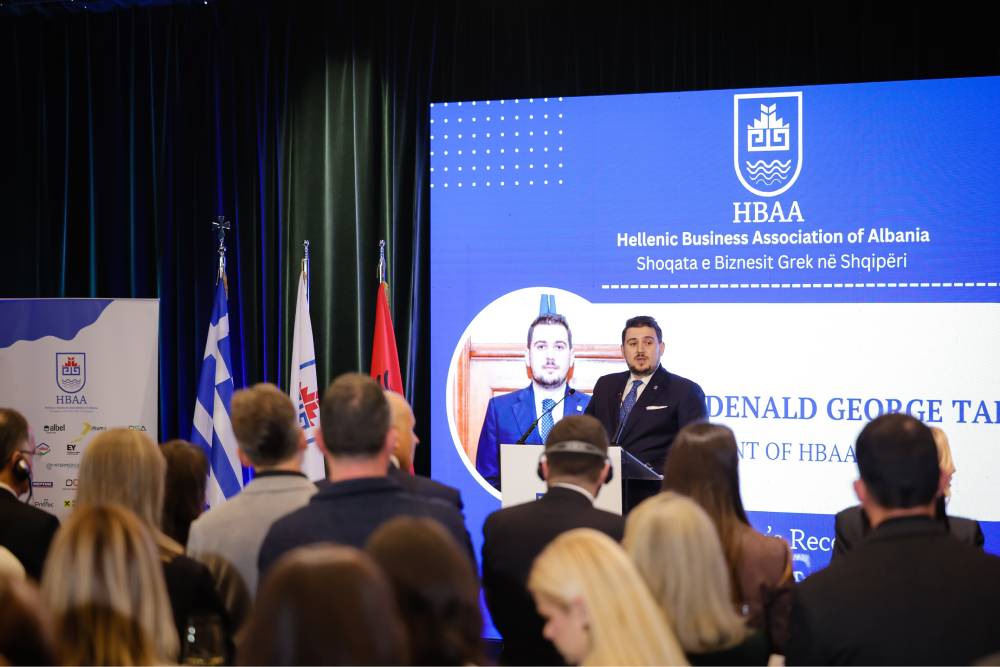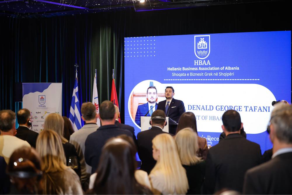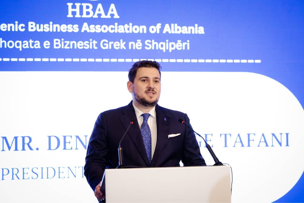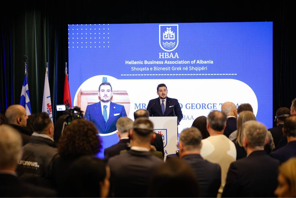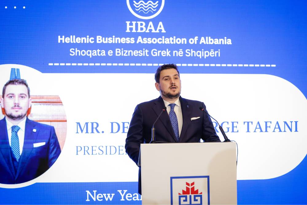 Në fjalimin e tij, Presidenti i Shoqatës e Biznesit Grek në Shqipëri, z. Denald George Tafani, nënvizoi se “komuniteti ynë i biznesit përfaqëson tashmë një bashkëbisedues institucional thelbësor për të tashmen dhe të ardhmen e ekonomisë”. Ai theksoi rëndësinë e funksionimit të institucioneve, transparencës dhe besimit si parakushte thelbësore për zhvillim të qëndrueshëm dhe investime. Gjithashtu u ndal te mbështetja e kursit evropian të Shqipërisë dhe te drejtimi strategjik i Shoqatës për forcimin e mëtejshëm dhe gradual të rolit të saj institucional, në bashkëpunim me autoritetet kompetente të të dy vendeve.