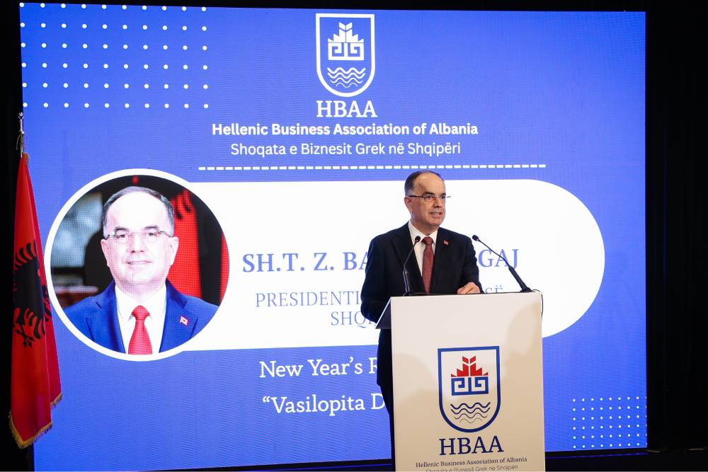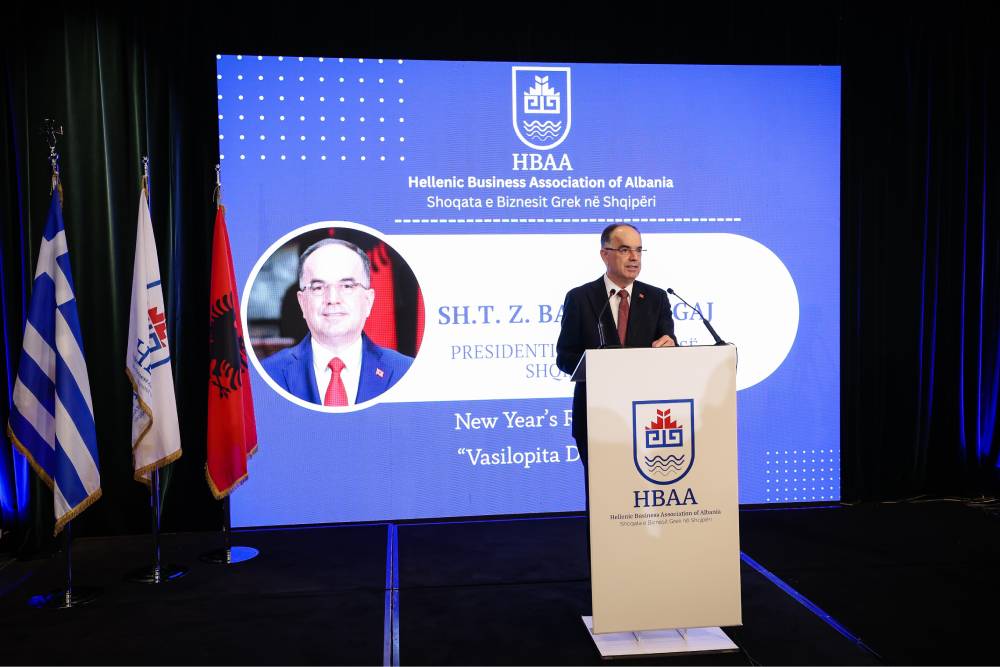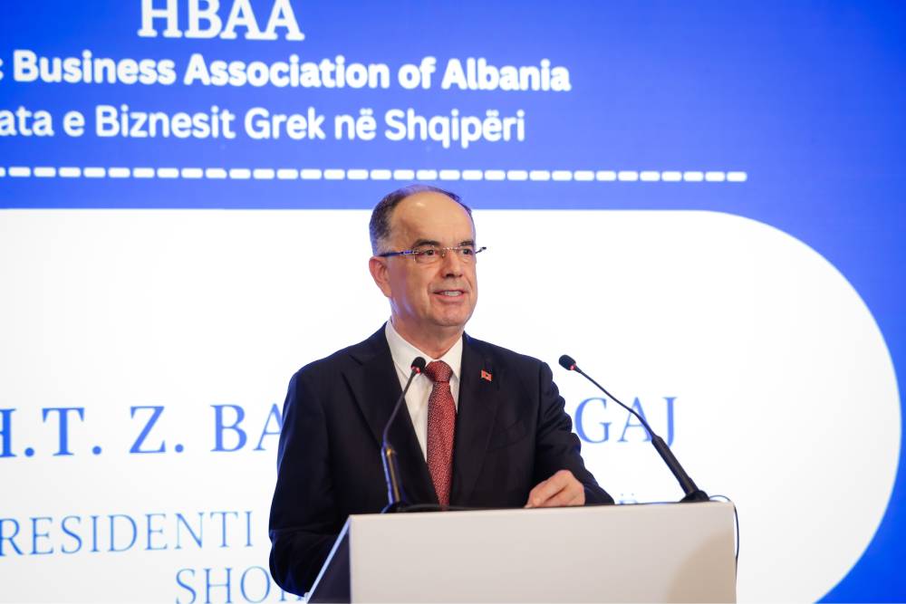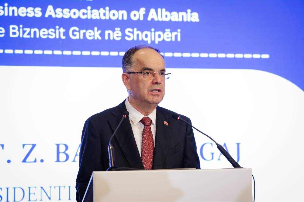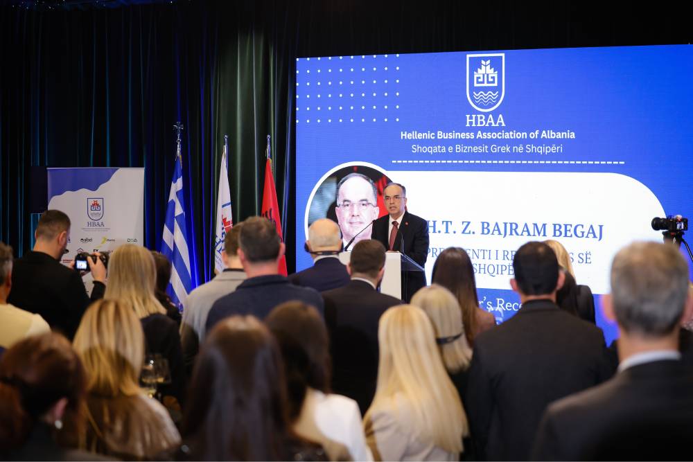 Në fjalën e tij, Presidenti i Republikës së Shqipërisë, Sh.T.Z. Bajram Begaj, falënderoi Shoqatën e Bizneseve të Greqisë në Tiranë për ftesën dhe u ndal te dinamika pozitive që po zhvillohet në marrëdhëniet ekonomike Shqipëri–Greqi, duke theksuar mundësitë për forcimin e mëtejshëm të nismave të përbashkëta investuese. Ai theksoi se Shqipëria ofron një mjedis të qëndrueshëm dhe të besueshëm për investime, si dhe vuri në dukje kontributin e ndërmarrjeve greke në sektorë kyç të ekonomisë dhe zhvillimet pozitive në tregtinë dypalëshe.