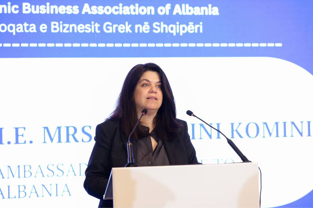 Në fjalën e saj, Ambasadorja e Greqisë në Shqipëri, znj. Komini, theksoi rolin e rëndësishëm të ndërmarrjeve greke në zhvillimin e ekonomisë shqiptare, në krijimin e vendeve të punës dhe në transferimin e njohurive dhe teknologjisë. Ajo vuri në dukje se bashkëpunimi ekonomik përbën një shtyllë kryesore besimi dhe stabiliteti në marrëdhëniet mes dy vendeve.