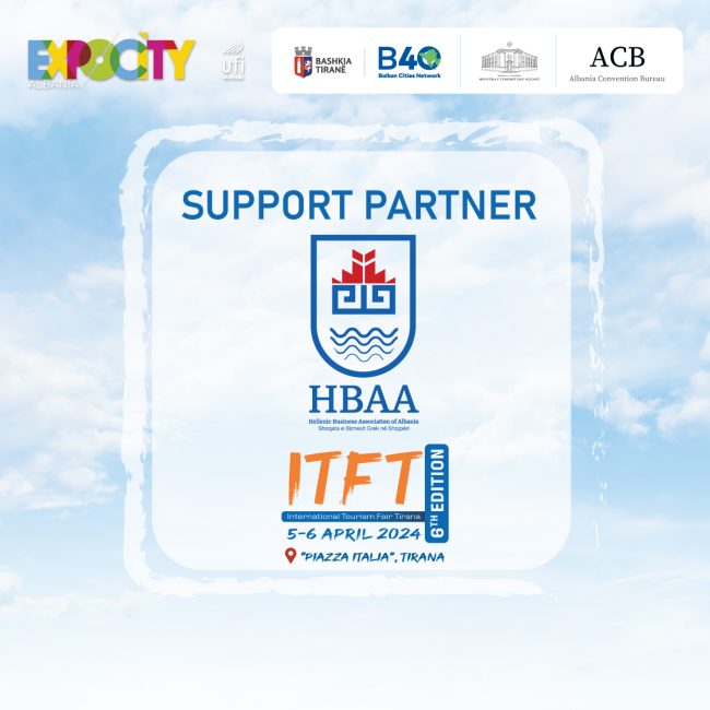 Στις 5-6 Απριλίου διοργανώνεται η 6 η Διεθνής Έκθεση Τουρισμού στα Τίρανα από την εταιρεία μέλος μας Expocity με την υποστήριξη της Ένωσης Ελληνικών Επιχειρήσεων Αλβανίας. Το Internacional Tourism Fair Tirana 2024 είναι μια μοναδική πλατφόρμα ανταλλαγής πληροφοριών στον τουριστικό κλάδο για το μέλλον του τουρισμού στη χώρα, με σκοπό να διαφημίσει την Αλβανία στον…