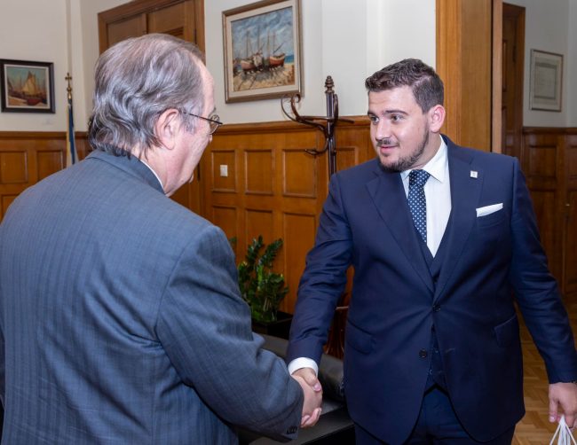 Ο Πρόεδρος της Ένωσης Ελληνικών Επιχειρήσεων Αλβανίας κ. Denald George Tafani στο πλαίσιο επαγγελματικού ταξιδιού στην Θεσσαλονίκη συναντήθηκε με τον Αντιπρόεδρο του Εμπορικού και Βιομηχανικού Επιμελητήρίου Θεσσαλονίκης – ΕΒΕΘ κ. Εμμανουήλ Βλαχογιάννη, στα γραφεία τους ΕΒΕΘ στην Θεσσαλονίκη. Οι δυο πλευρές συζητήσαν για τις προοπτικές και αμοιβαία συνεργασία ανάμεσα στους δυο φορείς, προς όφελος της…