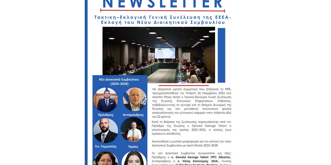 Διεξαγωγή της Τακτικής – Εκλογικής Γενικής Συνέλευσης της Ένωσης Ελληνικών Επιχειρήσεων Αλβανίας και Εκλογή του Νέου Διοικητικού Συμβουλίου (2025–2028)04/12/2025