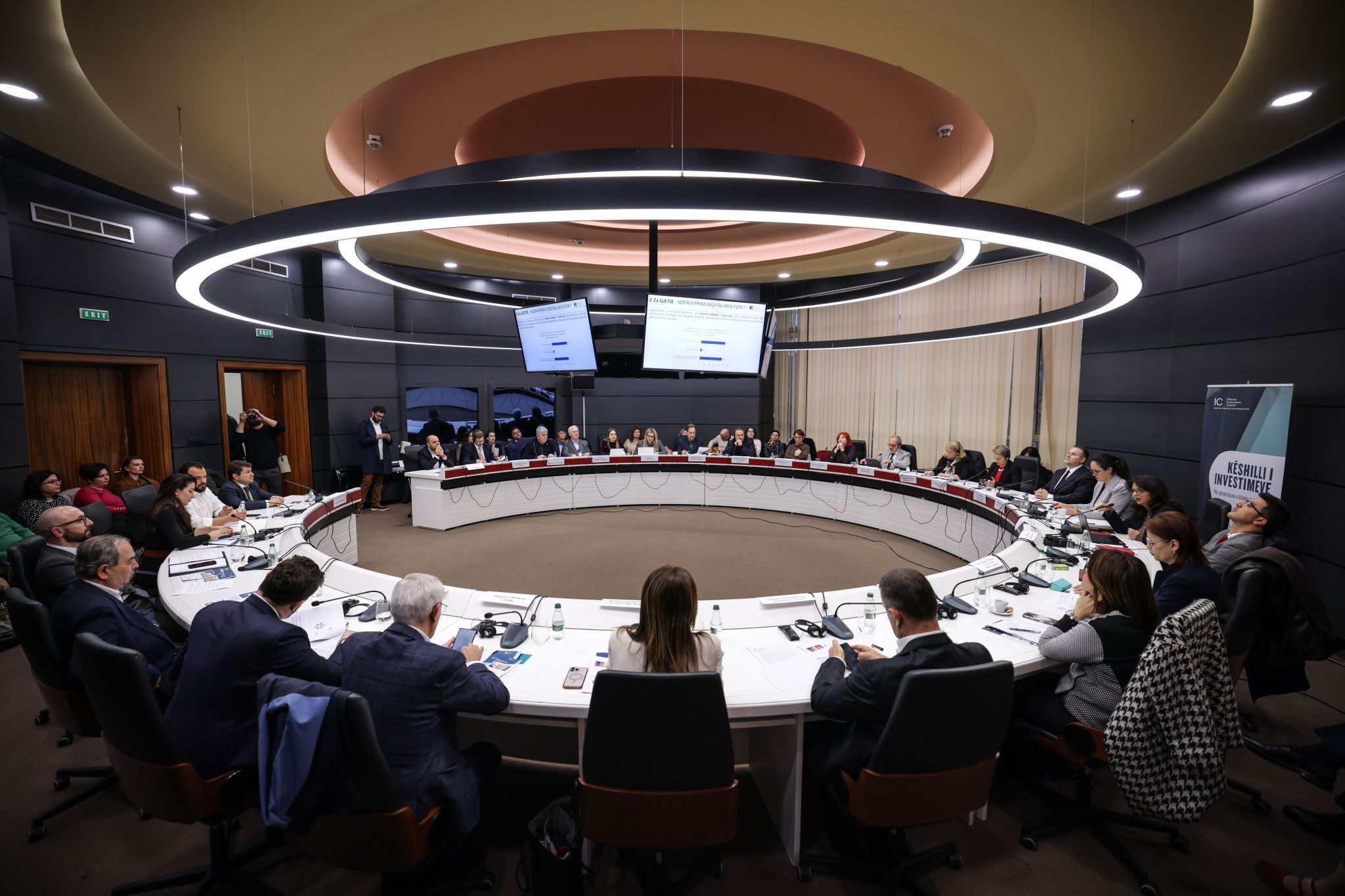 Albania Investment Council u mblodh nën drejtimin e Ministres së Ekonomisë dhe Inovacionit, znj. Delina Ibrahimaj, me pjesëmarrjen e Ministrit të Shtetit për Vetëqeverisjen Vendore, z. Ervin Demo. Diskutimet u përqendruan në sfidat e vazhdueshme të sektorit privat, përparimin e dixhitalizimit të shërbimeve publike lokale dhe qëndrimin e komunitetit të biznesit lidhur me procesin e integrimit të Shqipërisë në Bashkimin Evropian.