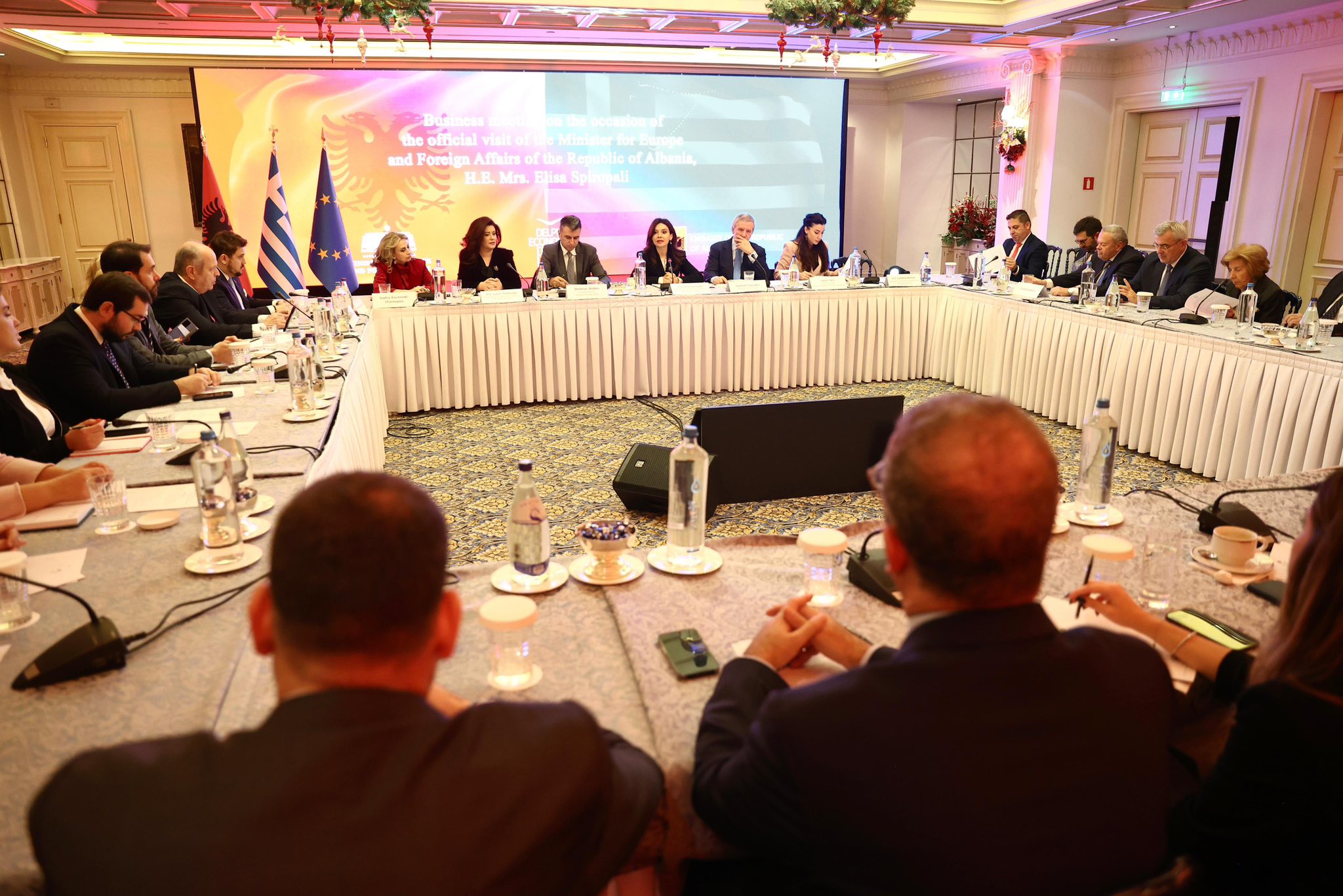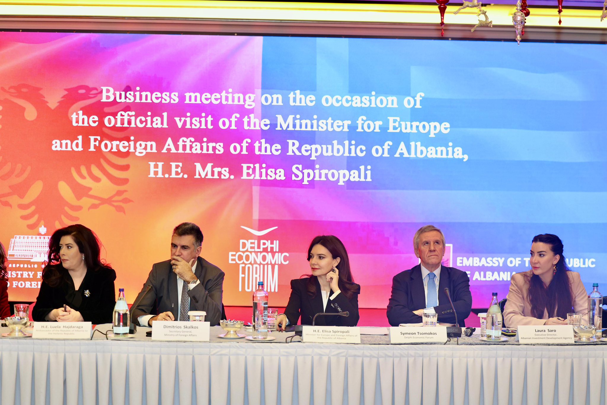 Në takim morën pjesë, ndër të tjerë, Ambasadorja e Republikës së Shqipërisë në Greqi Luela Hajdaraga, Sekretari i Përgjithshëm për Marrëdhëniet Ekonomike Ndërkombëtare dhe Ekstroversionin, z. Dimitris Skalkos, Nënkryetarja e Dhoma e Tregtisë dhe Industrisë së Athinës, znj. Sophia Efraimoglou – Kounenaki, Drejtoresha e AIDA, znj. Saro, si dhe përfaqësues të grupeve të mëdha të biznesit grek, institucioneve dhe mediave.