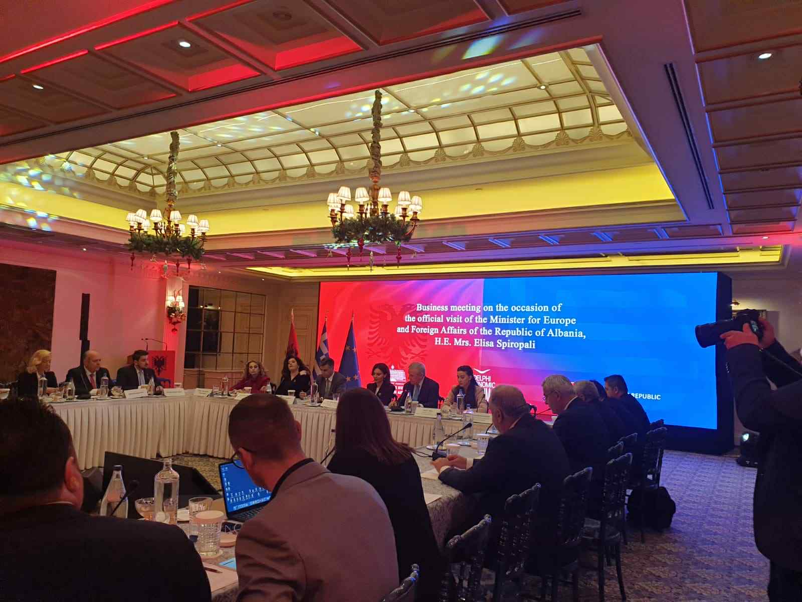 Shoqata e Biznesit Grek në Shqipëri mori pjesë në Breakfast Business Meeting, i cili u zhvillua në Athinë në kuadër të vizitës zyrtare të Ministres Elisa Spiropali dhe u organizua nga Delphi Economic Forum. Takimi shërbeu si një platformë e rëndësishme dialogu mbi marrëdhëniet ekonomike dypalëshe dhe perspektivat e bashkëpunimit ndërmjet biznesit grek dhe atij shqiptar.